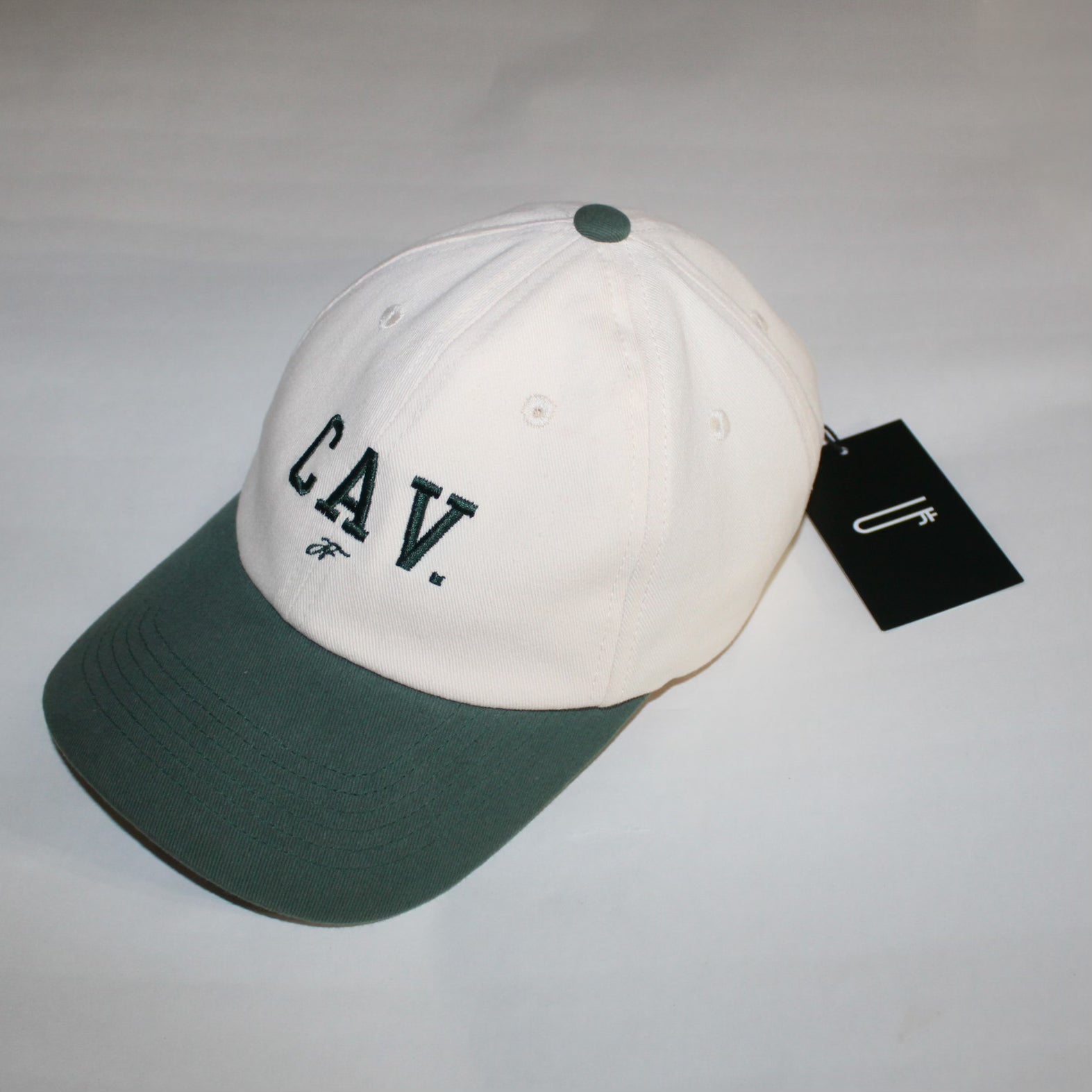 Crafted from premium cotton, our Signature Hat exudes sophistication. Featuring a sleek metal clasp for adjustment, it offers both style and comfort. Available in cream with emerald green accents.